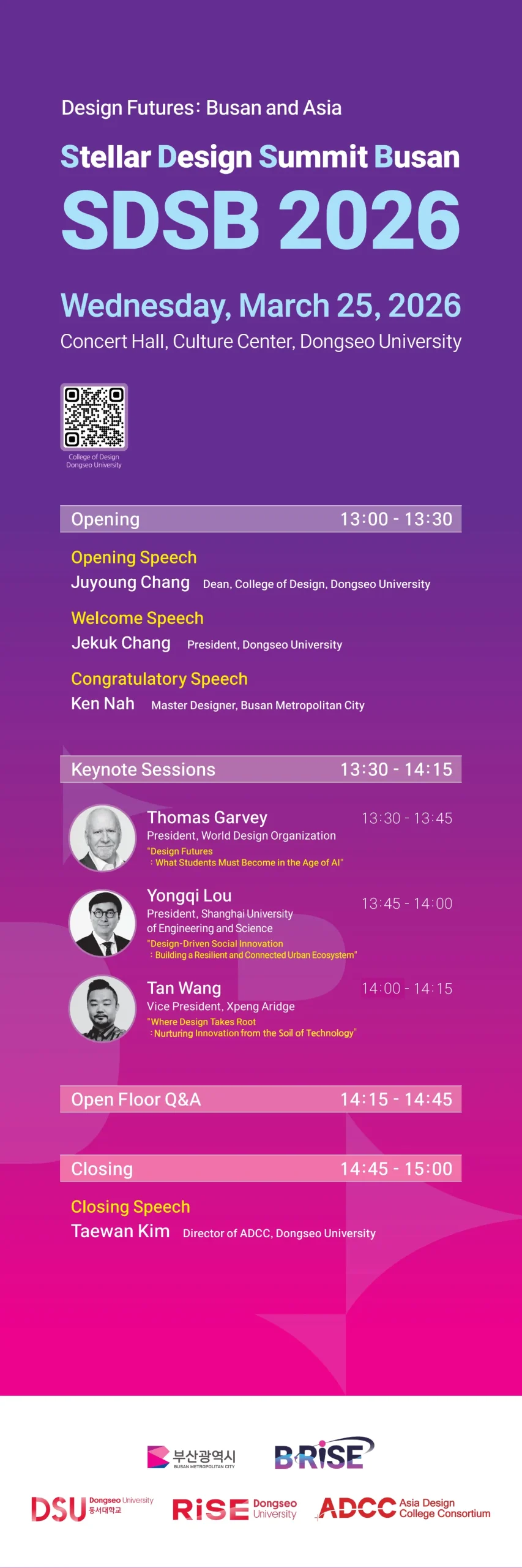 Dongseo University’s College of Design will host the STELLAR DESIGN SUMMIT BUSAN (SDSB) 2026 under the theme “Design Futures: Busan and Asia.” The symposium convenes global leaders—Thomas Garvey, Yongqi Lou, and Tan Wang—to explore Busan’s future as the 2028 World Design Capital, highlighting design’s role in shaping society, advancing regional innovation, and fostering Asia-wide collaboration.